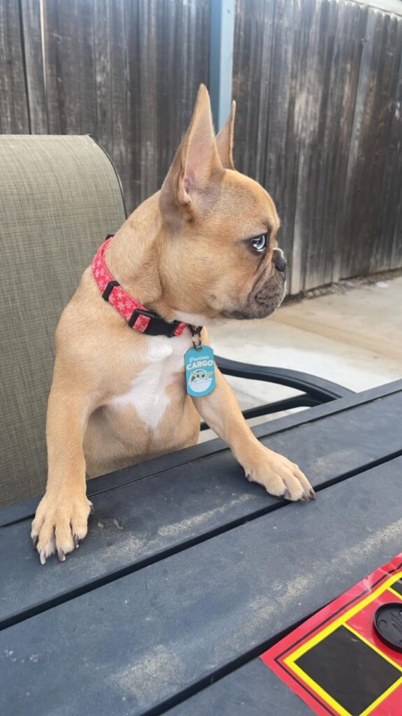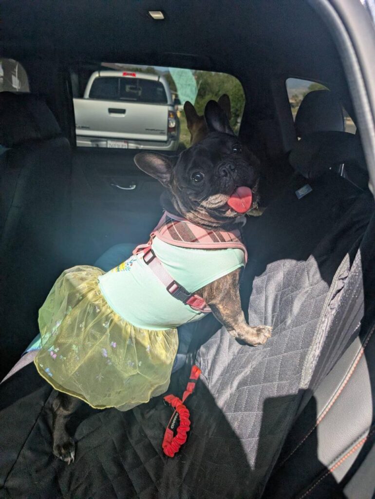 Ready for an adventure, or maybe just a cozy car ride? This adorable Frenchie, all dressed up and ready to go, perfectly captures the spirit of our beloved companions. Whether they’re exploring the world or simply enjoying the view from the back seat, every moment with a Frenchie is a precious one. Share your favorite Frenchie moments with us!
